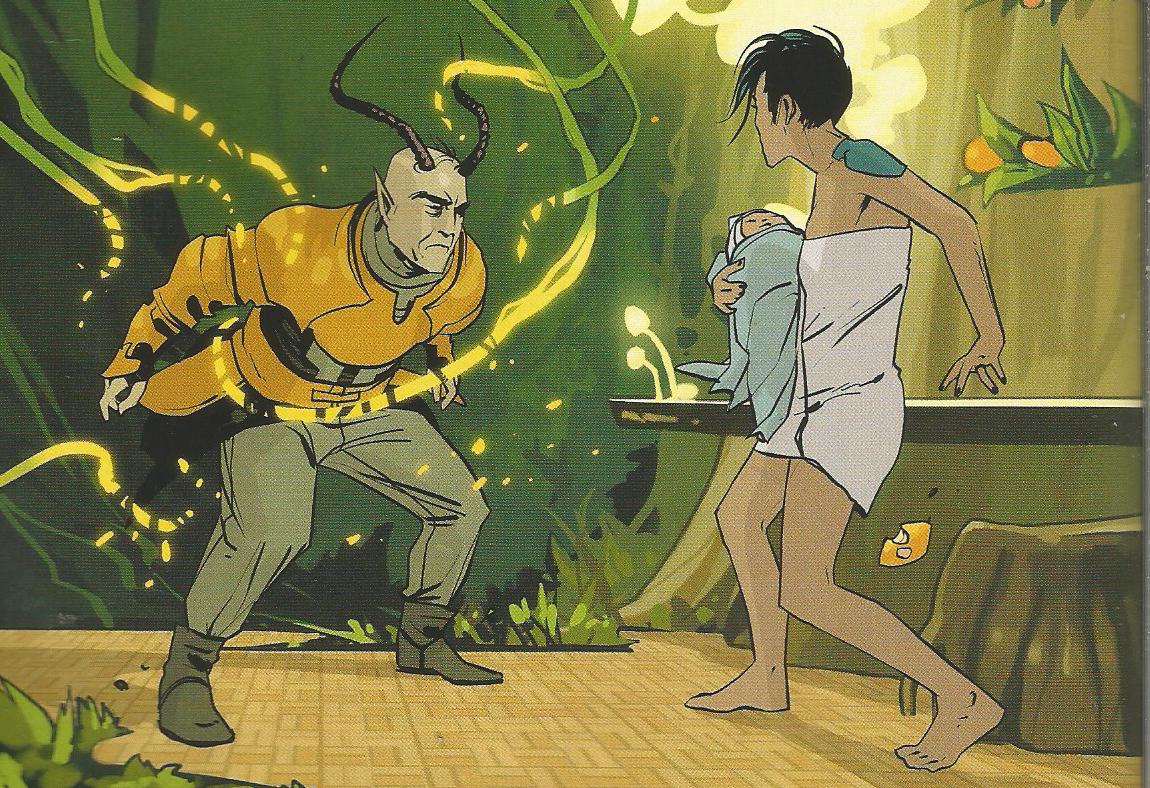 More and more, though, he's spending time in his own quarters. The door is usually open, and anyone looking for the Vision can find him in a very different-looking room: his gift from the tree wasn't something from home but a change to the ship. Anyone who had visited one of the homes built directly into a tree on the hand-holding planet would recognize the new state of his room. It's been completely reskinned to have living wood cover every surface, a soft bed of vines instead of a mattress, luminescent fungi in place of lights, and tiny plants everywhere. It smells alive in here in a way nowhere else on the ship--except the middle of his gardens--does. No wonder he's been hanging out here....]